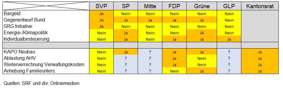 Vorlage 2, 3 und 4 wurden vom Kantonsrat mit knappem MEHR angenommen.